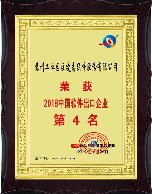 10月25日,2019(第三屆)中國(日照)軟件和信息服務業領袖年會暨2019(第四屆)中國軟件和信息服務業品牌大會盛大召開,中國軟件和信息服務業網在會上發布2018年中國軟件出口企業排行榜入選企業榜單,凌志軟件連續3年獲得“中國軟件出口企業”第四名的好成績。
