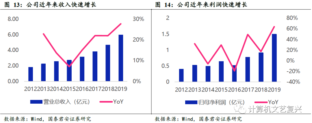 近七年收入利潤保持20%左右的復合增長。2019年公司實現接近6億元的營業收入,較2012年的1.82億有大幅提升,七年復合增長率接近20%。同時公司的利潤也保持快速增長,從2012年的不到4000萬利潤增長到2019年的1.5億,其復合增長率達到20.83%。