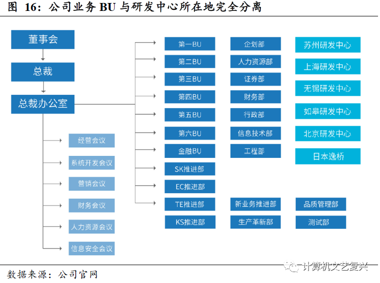 遠程辦公能力是公司控制成本以及擴張的核心競爭力。公司在經歷從陸家嘴軟件園,到蘇州園區,再到目前江蘇如皋的擴張過程后,已建立一套完備的遠程辦公機制。公司每個地區的一把手都是行政領導,不負責具體業務,而業務線的領導則分散在各地,項目組里的員工也是分散在各地。一般公司的業務會議和管理會議都在線上完成,辦公協作也都在線上完成,甚至于有員工從入職到離職沒有見過直系領導的面。對于一家沒有遠程辦公機制的公司而言,邁出這一步十分困難,但對于從一開始就建立了遠程辦公機制的公司而言,這一切都顯得順理成章。公司的遠程辦公機制使得公司在控制成本方面大幅領先于競爭對手,也是支撐公司持續異地擴張的基礎。