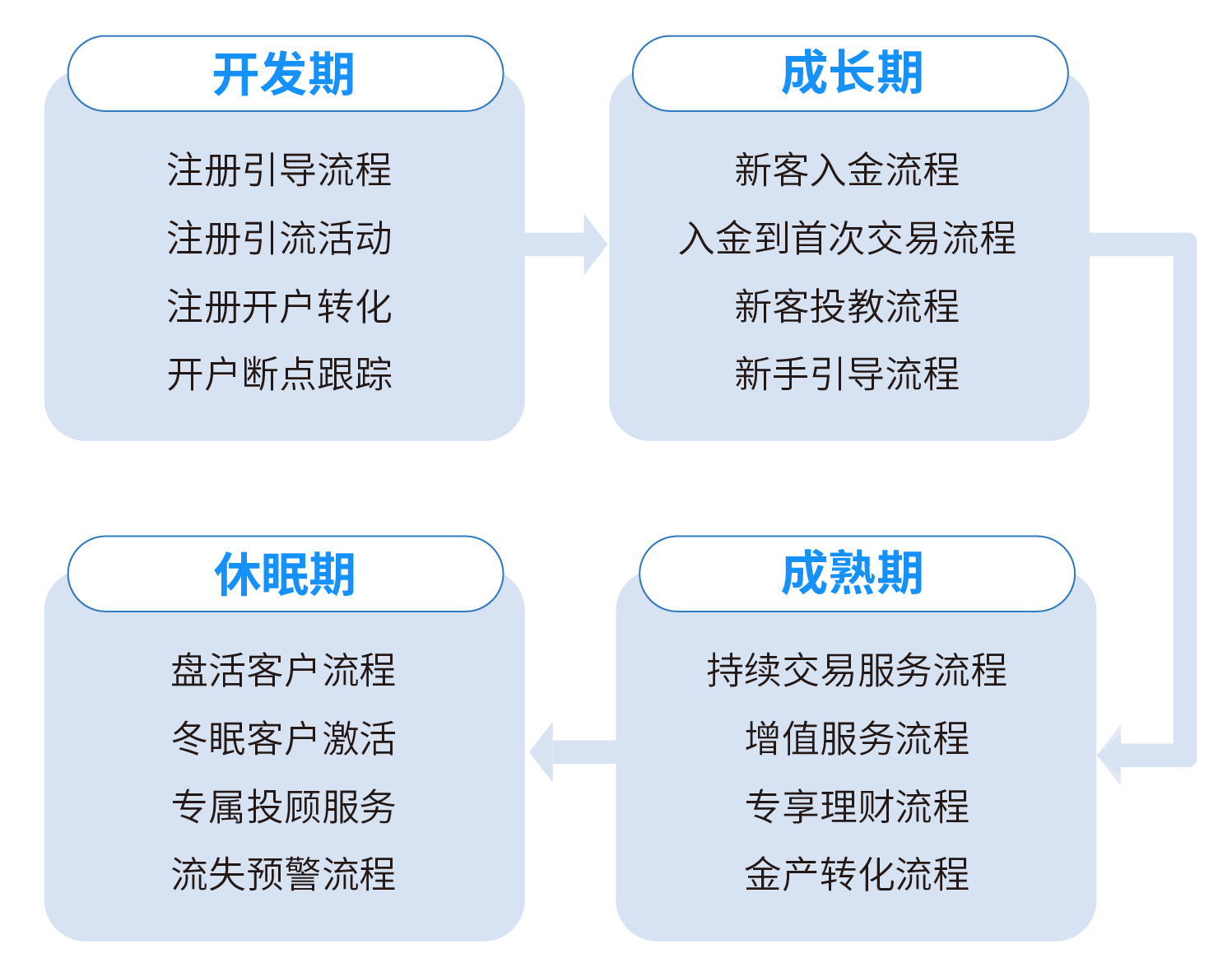 隨著產品規模的擴張和移動互聯網的建設,證券行業已具備數字化運營基礎和多元化服務場景。一方面,線上用戶數量激增,另一方面,傳統的線下服務已不能滿足用戶日益多元化的投資需求。創新運營模式,融合線上線下資源,提供精細化、自動化、智能化運營策略,成為券商數字化轉型的重要利器。