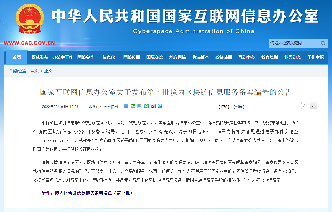 近日,國家互聯網信息辦公室發布了第七批境內區塊鏈信息服務備案編號的公告,凌志軟件“基于上證鏈的投資者行為適當性舉證項目”成功完成備案。