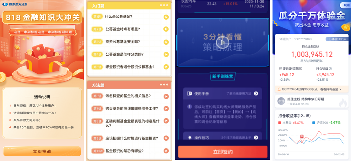 各大券商圍繞投資、理財(cái)主題各顯身手,紛紛舉辦和推出自家理財(cái)活動(dòng)。其中典型的有: