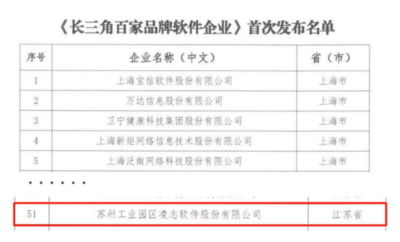近日,滬、蘇、浙、皖四省軟件行業(yè)協(xié)會(huì)首次聯(lián)合發(fā)布了《長(zhǎng)三角百家品牌軟件企業(yè)》名單,凌志軟件成功上榜!