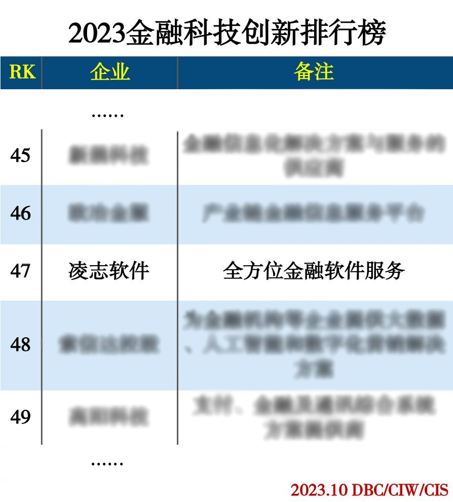 近日,由德本咨詢(DBC)、中國社會科學院信息化研究中心(CIS)、《互聯網周刊》(CIW)共同評選的“2023金融科技創新排行榜”榜單正式發布,凌志軟件成功上榜!這是凌志軟件連續第三次榮登該榜單,充分展示了其在金融科技創新領域的強勁實力。