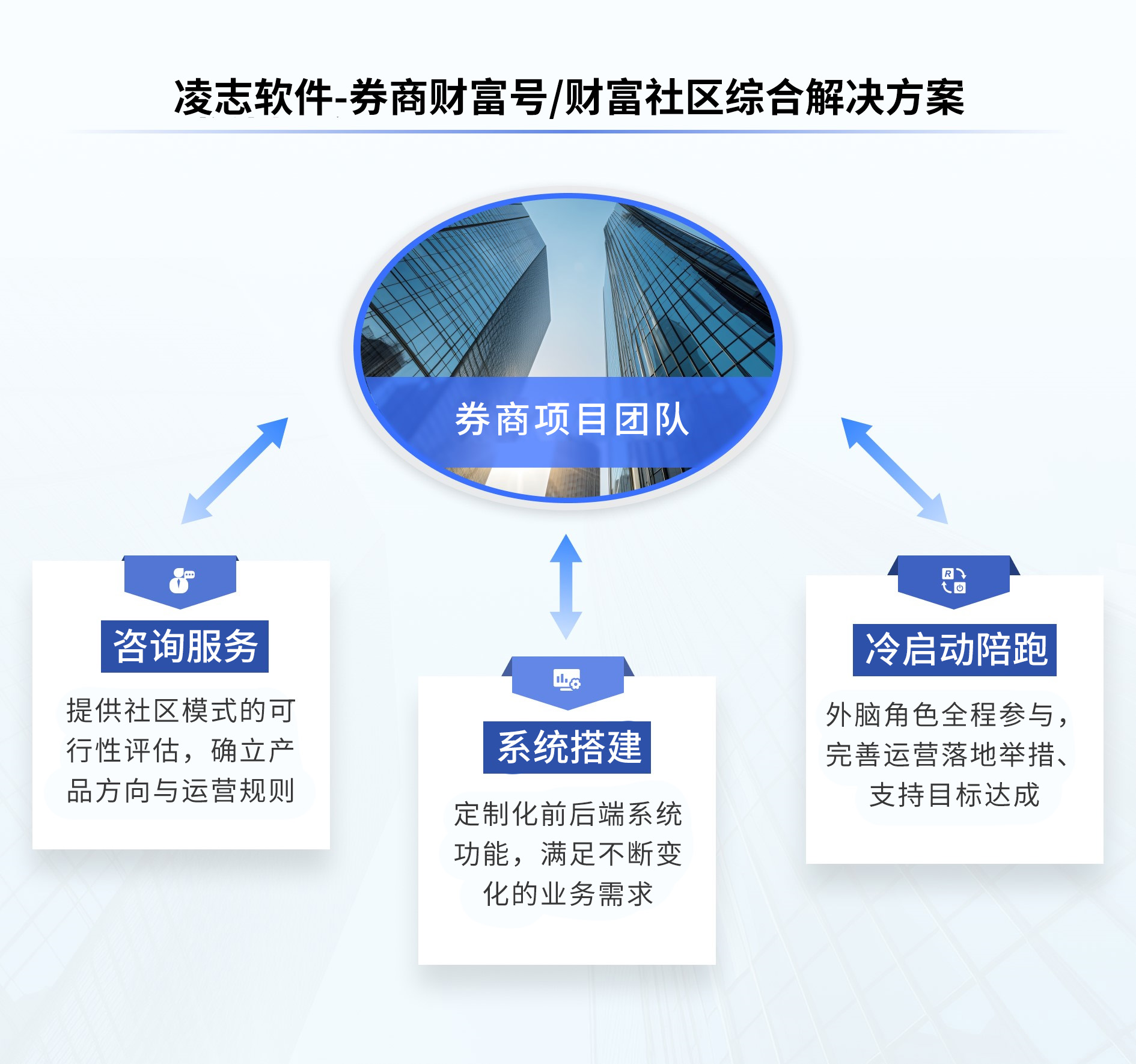 結(jié)合行業(yè)發(fā)展需求,凌志軟件基于對券商內(nèi)在條件、資源配置和獨特需求的深度分析,全面評估最適合的模式及可行性,為券商提供券商財富號/財富社區(qū)綜合解決方案,方案圍繞社區(qū)創(chuàng)建,從運營規(guī)劃、系統(tǒng)實施、上線啟動到常態(tài)化過程,為券商順利啟動和優(yōu)化社區(qū)服務(wù)保駕護航。