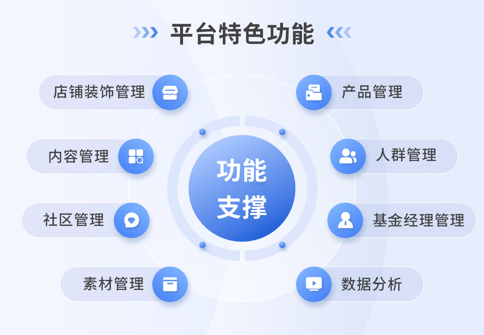 凌志軟件為財富號/財富社區(qū)的建設(shè)提供系統(tǒng)解決方案,主要覆蓋用戶前端、后臺管理和基金公司前端的設(shè)計三個大模塊,平臺主要特色功能如下: